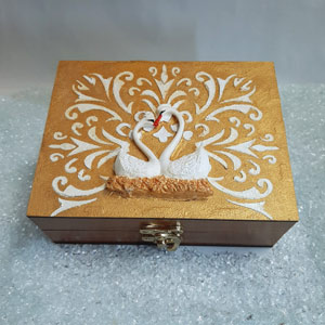 روی جعبه هنر زیبای پتینه اجرا شده و داخل سر جعبه کاملا کار شده می باشد که باعث جذابیت بیشتری شده، بعد از خارج کردن کنسرو میتوان از جعبه به عنوان جعبه زیورالات و هدیه استفاده کرد.